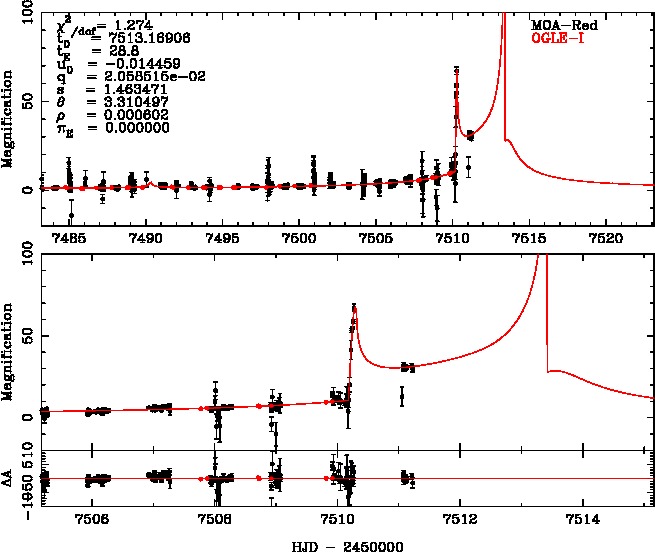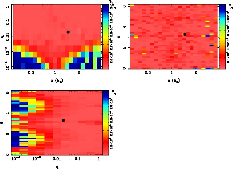 | tE(day) | q | s | α(radian) | ρ | χ² |