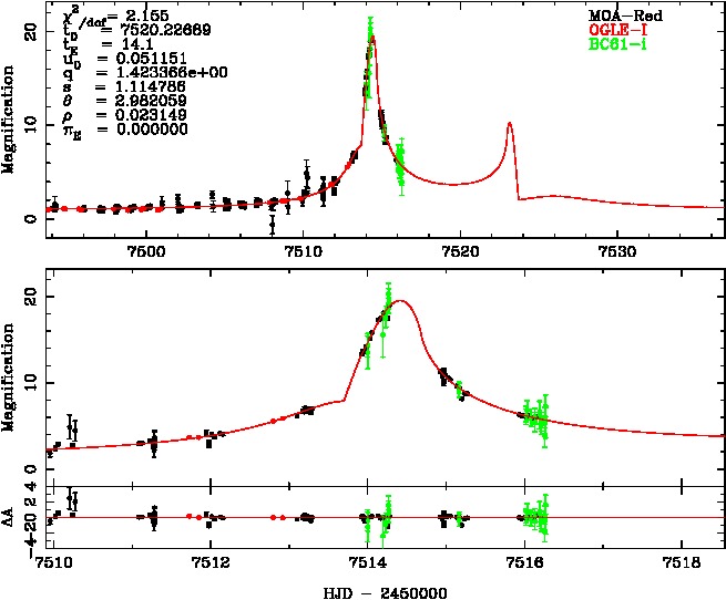 | tE(day) | q | s | α(radian) | ρ | χ² |