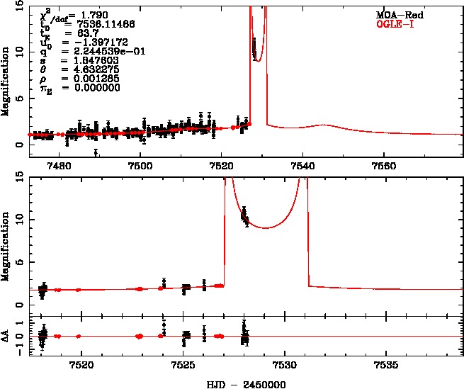 | tE(day) | q | s | α(radian) | ρ | χ² |