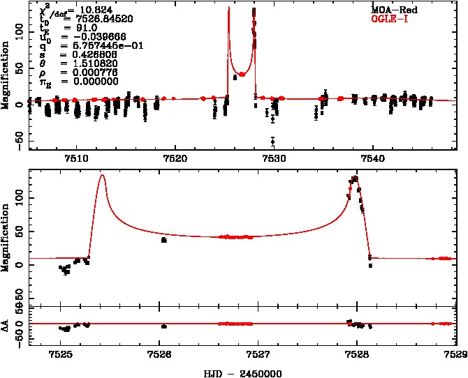 | tE(day) | q | s | α(radian) | ρ | χ² |