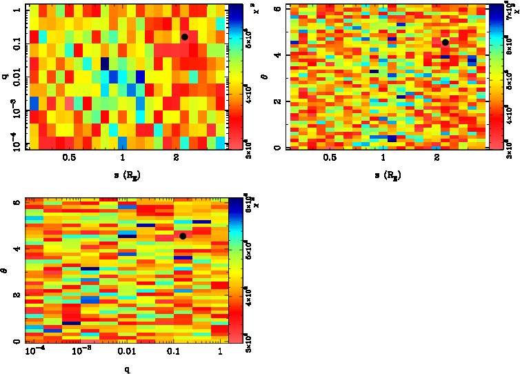 | tE(day) | q | s | α(radian) | ρ | χ² |