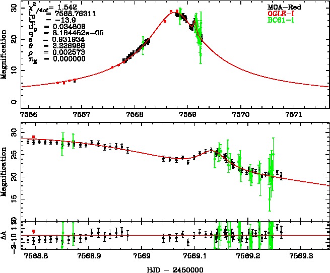 | tE(day) | q | s | α(radian) | ρ | χ² |