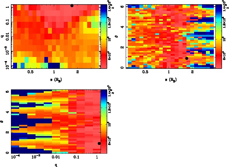 | tE(day) | q | s | α(radian) | ρ | χ² |