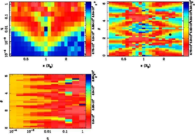 | tE(day) | q | s | u0 | α(radian) | ρ | πE,N | πE,E | χ² |