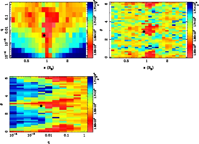| tE(day) | q | s | α(radian) | ρ | χ² |