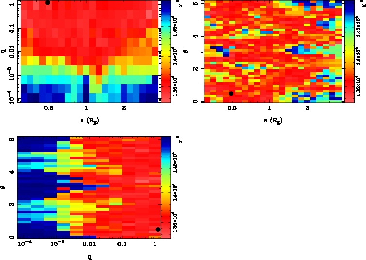 | tE(day) | q | s | α(radian) | ρ | χ² |