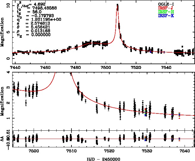 | tE(day) | q | s | α(radian) | ρ | χ² |
