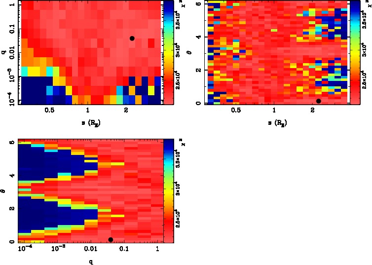 | tE(day) | q | s | α(radian) | ρ | χ² |