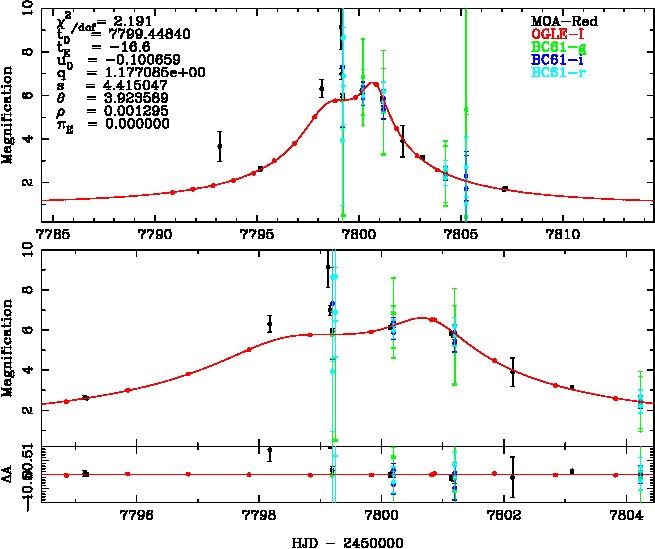 | tE(day) | q | s | u0 | α(radian) | ρ | χ² |