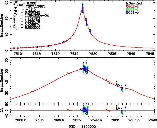 | tE(day) | q | s | u0 | α(radian) | ρ | χ² |