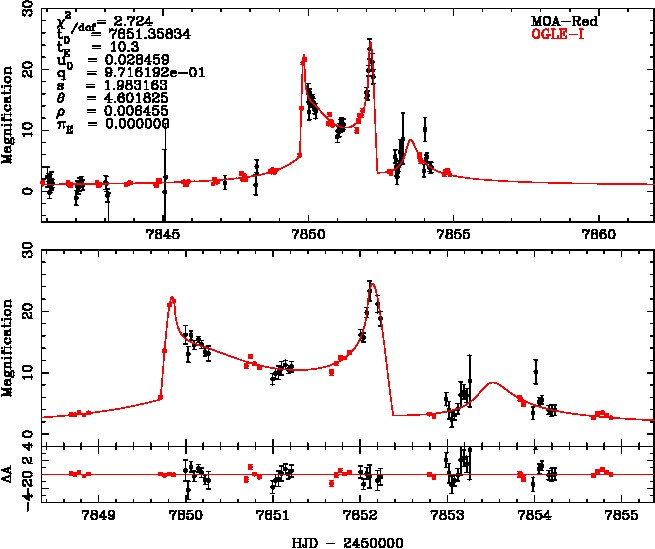 | tE(day) | q | s | u0 | α(radian) | ρ | χ² |
