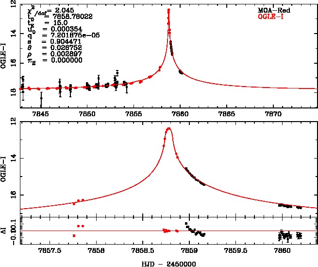 | tE(day) | q | s | u0 | α(radian) | ρ | χ² |