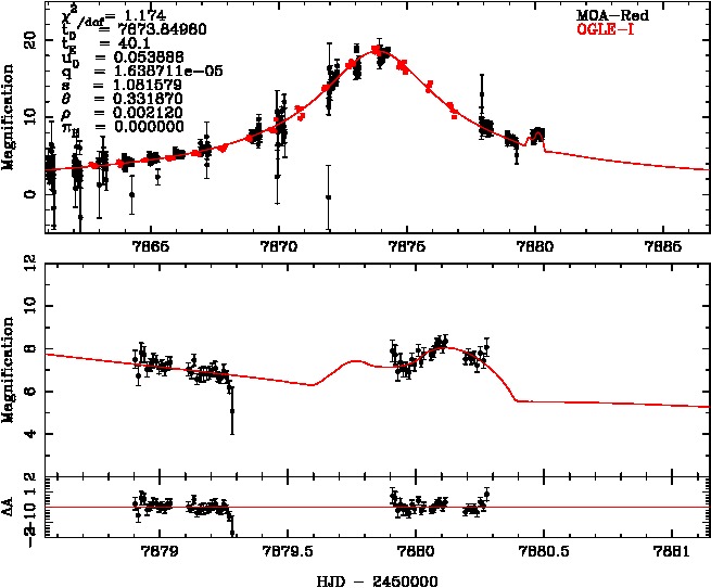 | tE(day) | q | s | u0 | α(radian) | ρ | χ² |