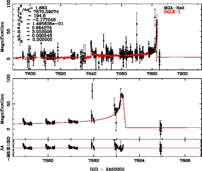 | tE(day) | q | s | u0 | α(radian) | ρ | χ² |
