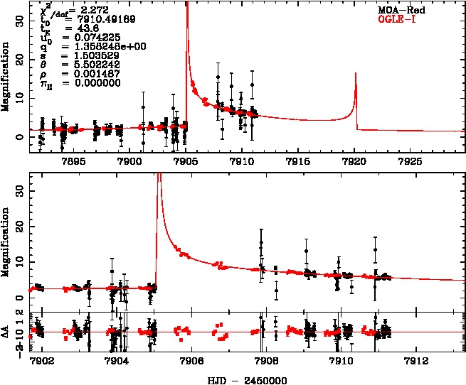 | tE(day) | q | s | u0 | α(radian) | ρ | χ² |