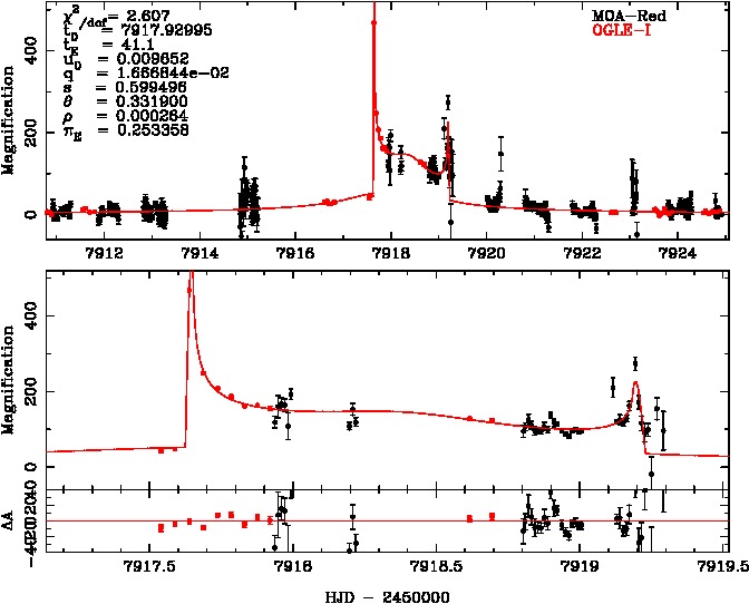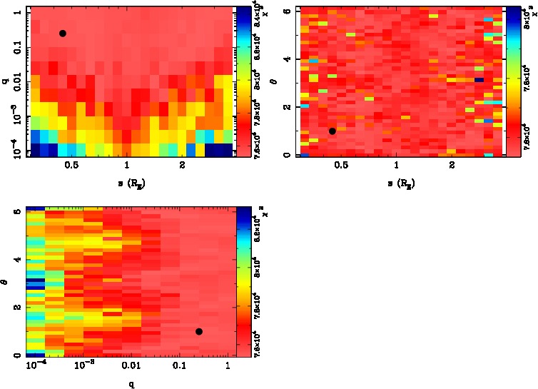 | tE(day) | q | s | u0 | α(radian) | ρ | χ² |