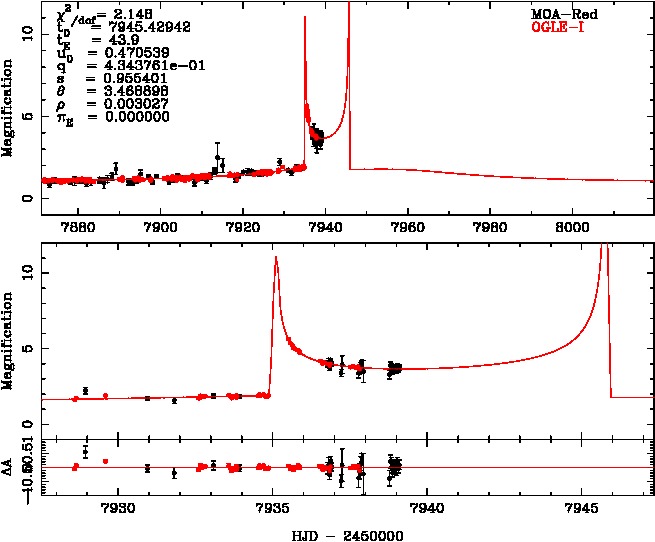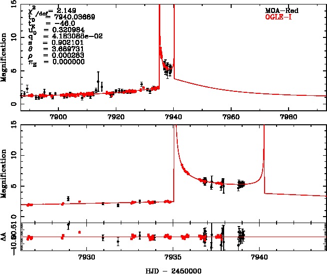 | tE(day) | q | s | u0 | α(radian) | ρ | χ² |