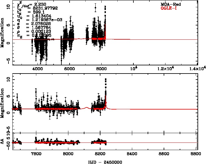 | t0(HJD-2450000) | tE(day) | q | s | u0 | α(radian) | ρ | πE,N | πE,E | χ² |