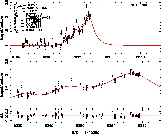| t0(HJD-2450000) | tE(day) | q | s | u0 | α(radian) | ρ | χ² |