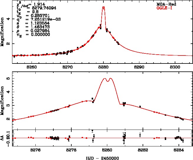 | t0(HJD-2450000) | tE(day) | q | s | u0 | α(radian) | ρ | χ² |