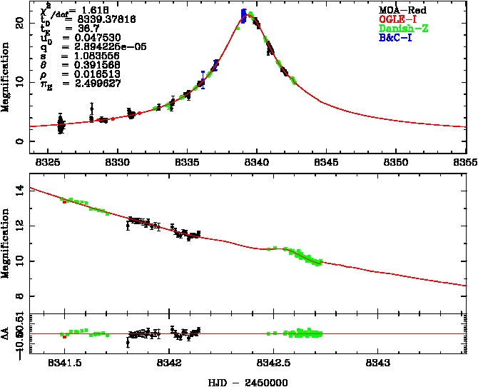 | t0(HJD-2450000) | tE(day) | q | s | u0 | α(radian) | ρ | πE,N | πE,E | χ² |