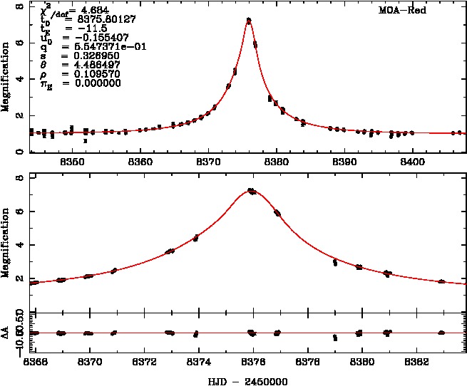 | t0(HJD-2450000) | tE(day) | q | s | u0 | α(radian) | ρ | χ² |