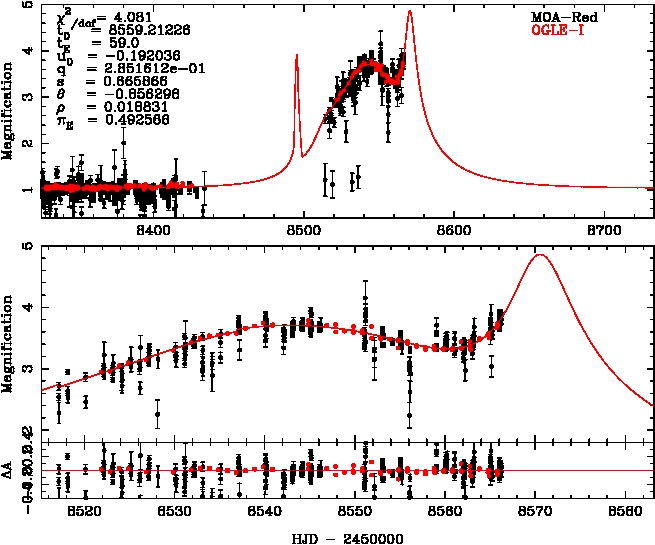 | t0(HJD-2450000) | tE(day) | q | s | u0 | α(radian) | ρ | πE,N | πE,E | χ² |