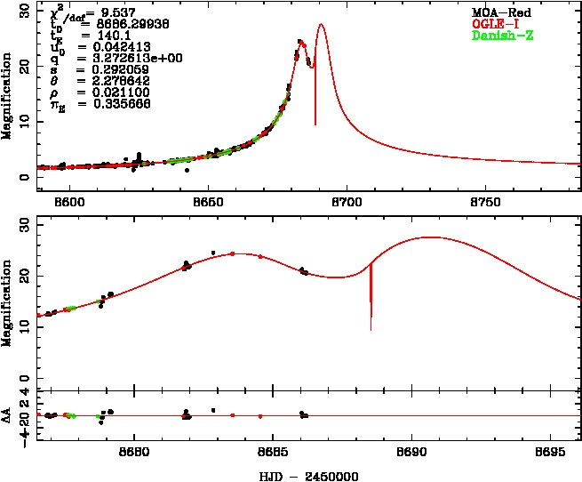 | t0(HJD-2450000) | tE(day) | q | s | u0 | α(radian) | ρ | πE,N | πE,E | χ² |
