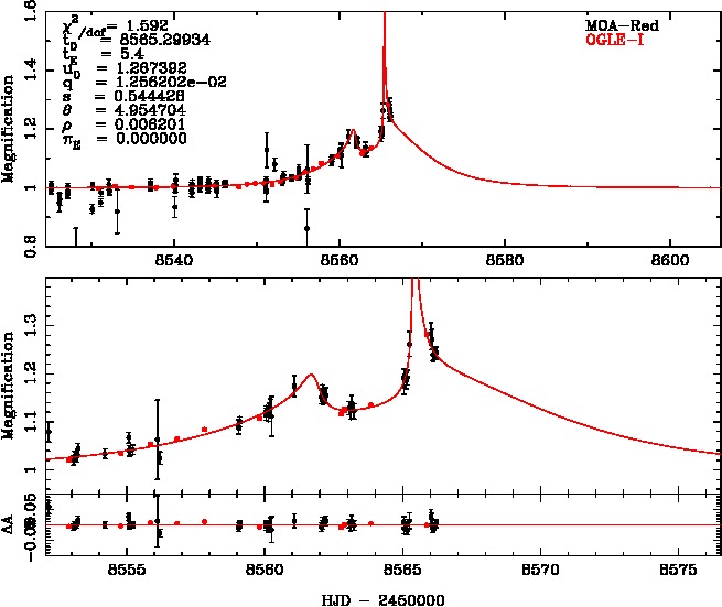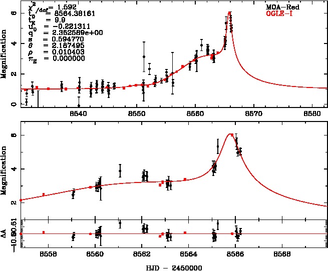 | t0(HJD-2450000) | tE(day) | q | s | u0 | α(radian) | ρ | χ² |