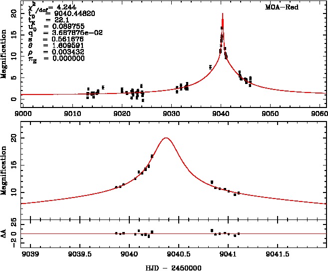 | t0(HJD-2450000) | tE(day) | q | s | u0 | α(radian) | ρ | χ² |