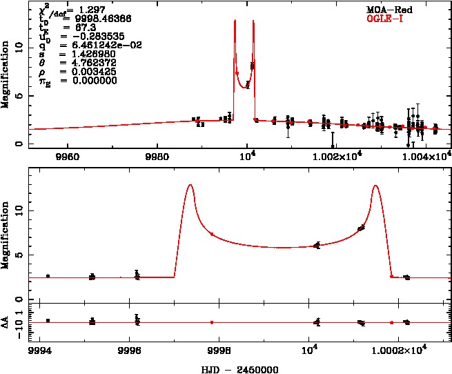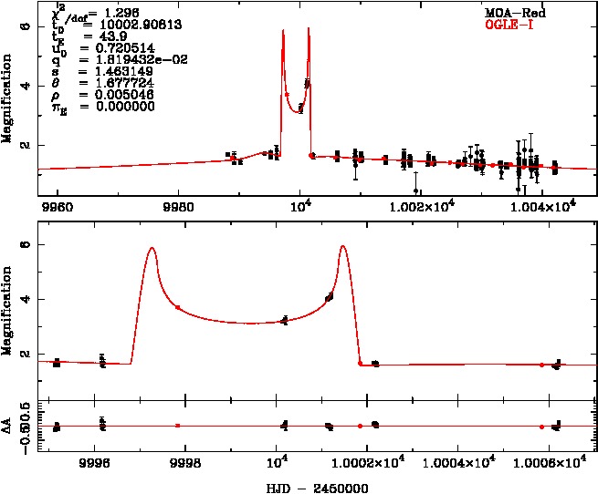 | t0(HJD-2450000) | tE(day) | q | s | u0 | α(radian) | ρ | χ² |