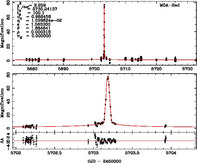 | tE(day) | q | s | u0 | α(radian) | ρ | χ² |