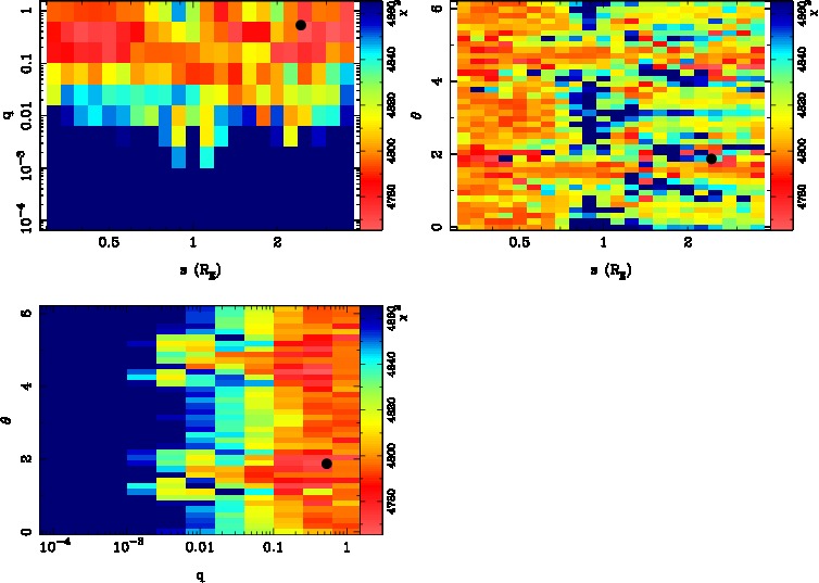 | t0(HJD-2450000) | tE(day) | q | s | u0 | α(radian) | ρ | χ² |
