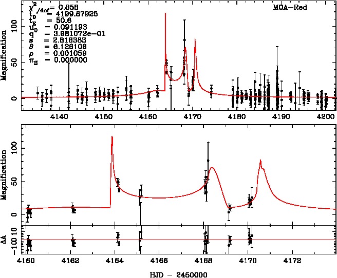 | t0(HJD-2450000) | tE(day) | q | s | u0 | α(radian) | ρ | χ² |
