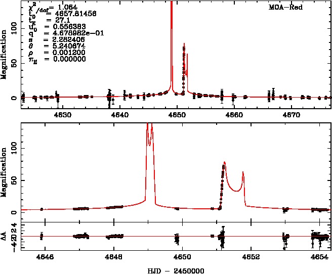 | t0(HJD-2450000) | tE(day) | q | s | u0 | α(radian) | ρ | χ² |