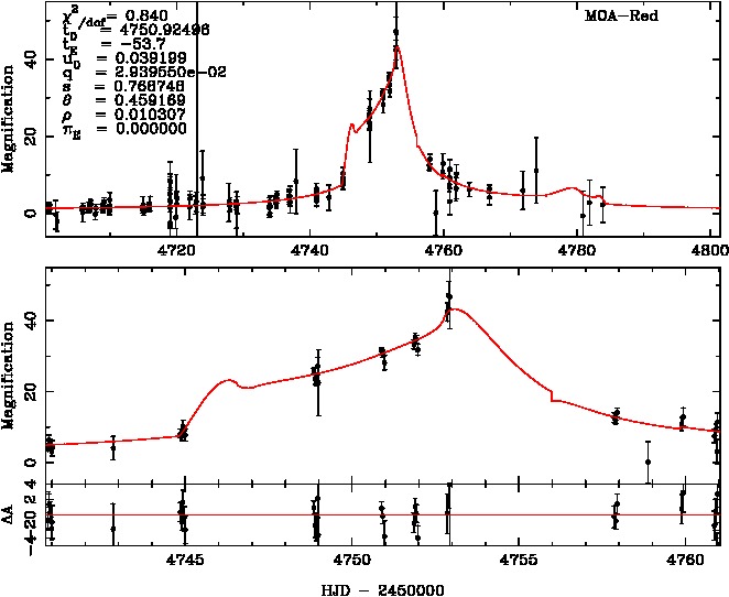 | t0(HJD-2450000) | tE(day) | q | s | u0 | α(radian) | ρ | χ² |