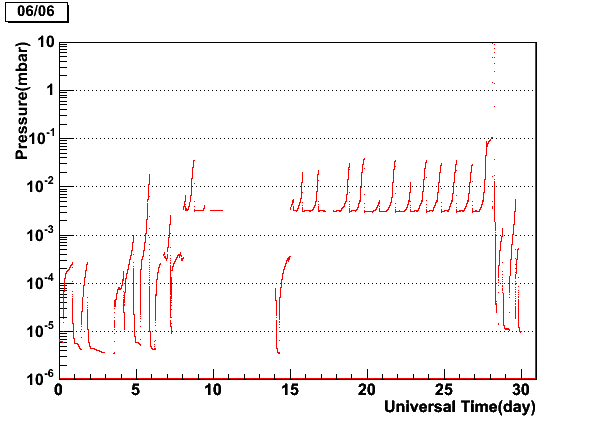 2006/6/30: We could not observe between 3:05 and 4:15 in order to pump. The pressure was 4 E-4 at 3 am. / night time = 46560(sec)