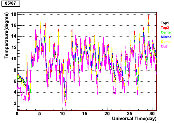 2007/5/15: Today, winds come suddenly. Winds >10m/s sometimes occur suddenly after 1 hour of no wind. Dark: D2263 (300sec) and D2266 (60sec). / night time = 44580(sec)