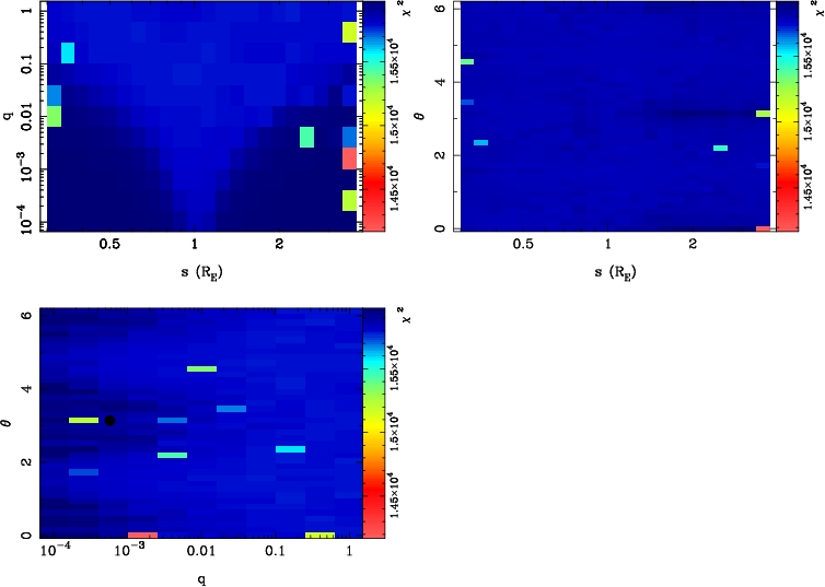 | tE(day) | q | s | α(radian) | ρ | χ² |