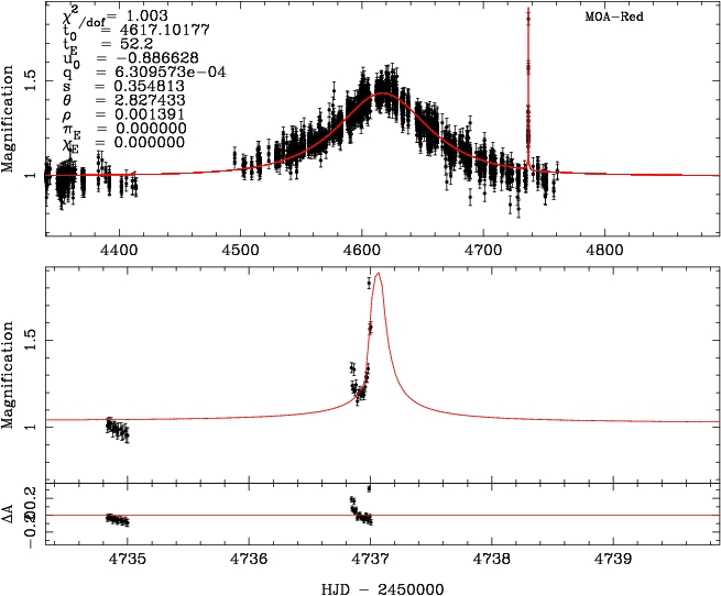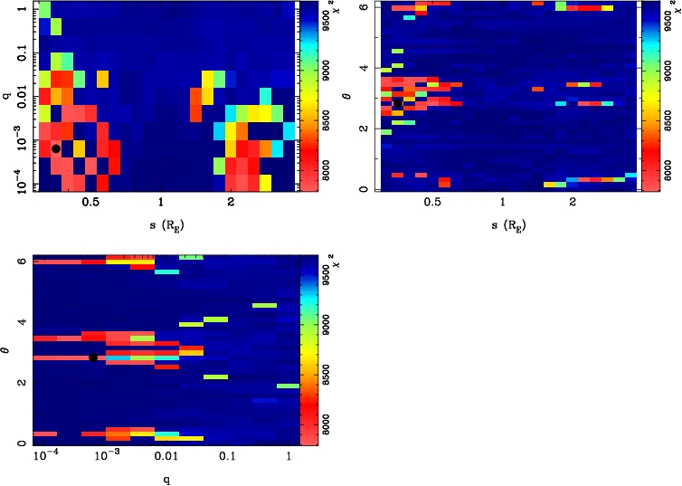 | tE(day) | q | s | α(radian) | ρ | χ² |