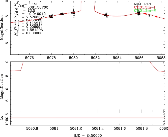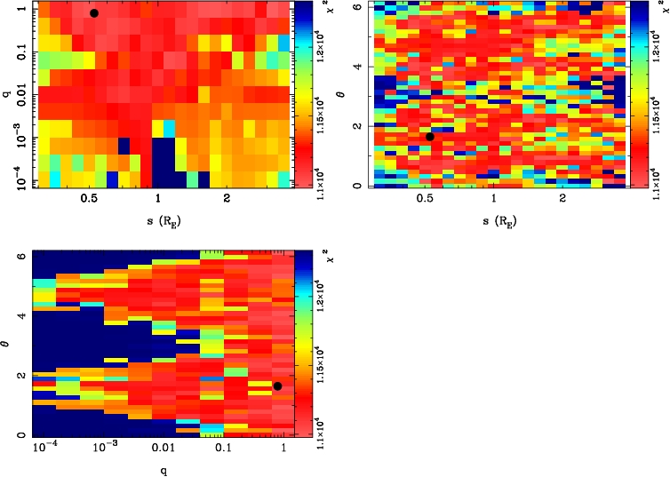 | tE(day) | q | s | α(radian) | ρ | χ² |