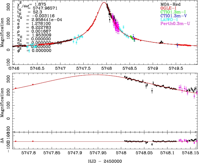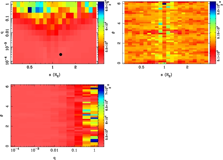 | tE(day) | q | s | α(radian) | ρ | χ² |