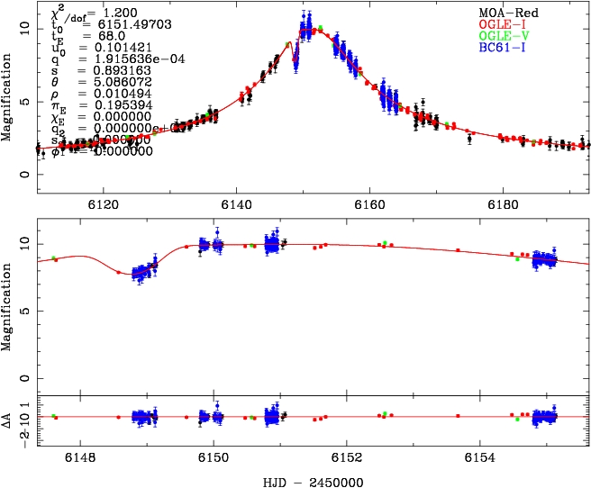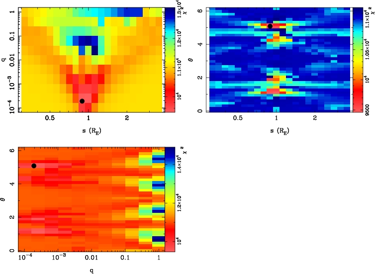 | tE(day) | q | s | α(radian) | ρ | χ² |