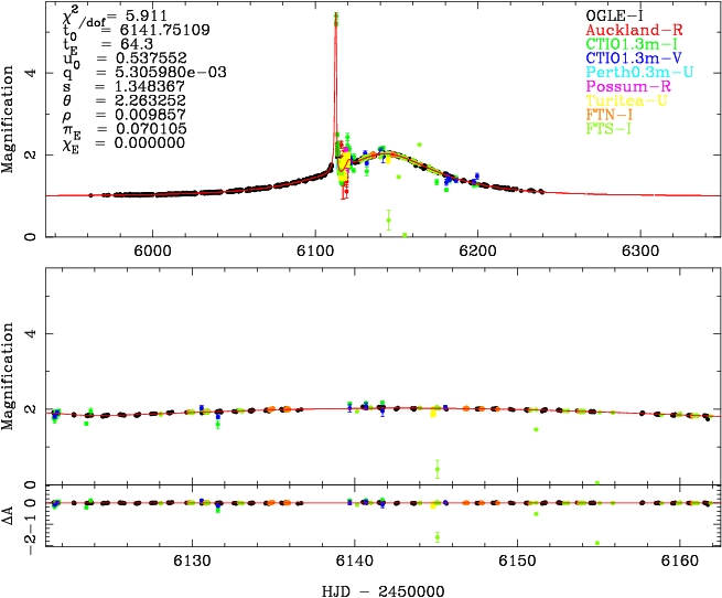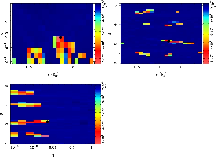 | tE(day) | q | s | α(radian) | ρ | χ² |