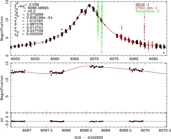 | tE(day) | q | s | α(radian) | ρ | χ² |