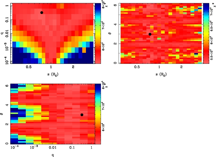 | tE(day) | q | s | α(radian) | ρ | χ² |