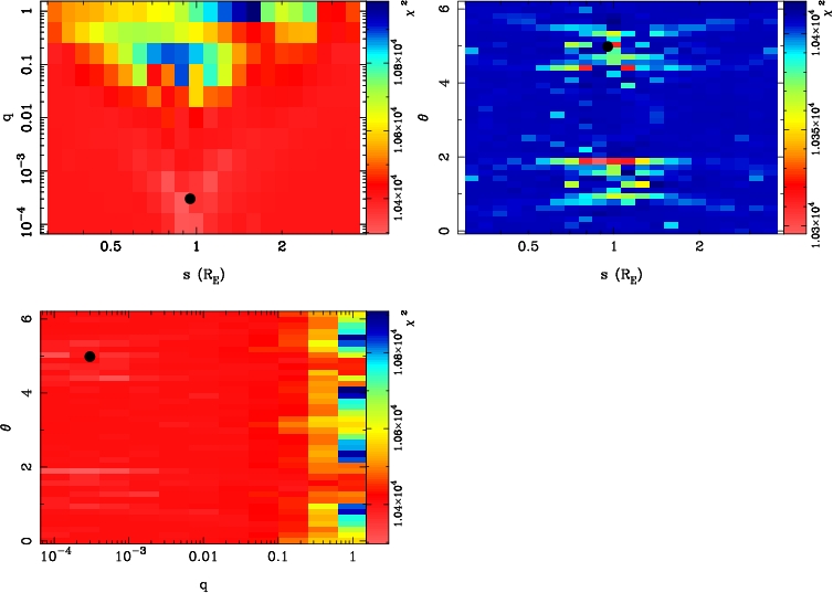 | tE(day) | q | s | α(radian) | ρ | χ² |