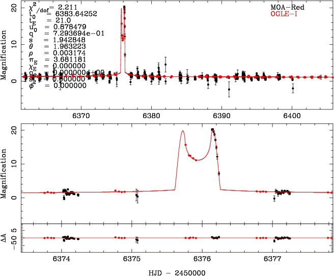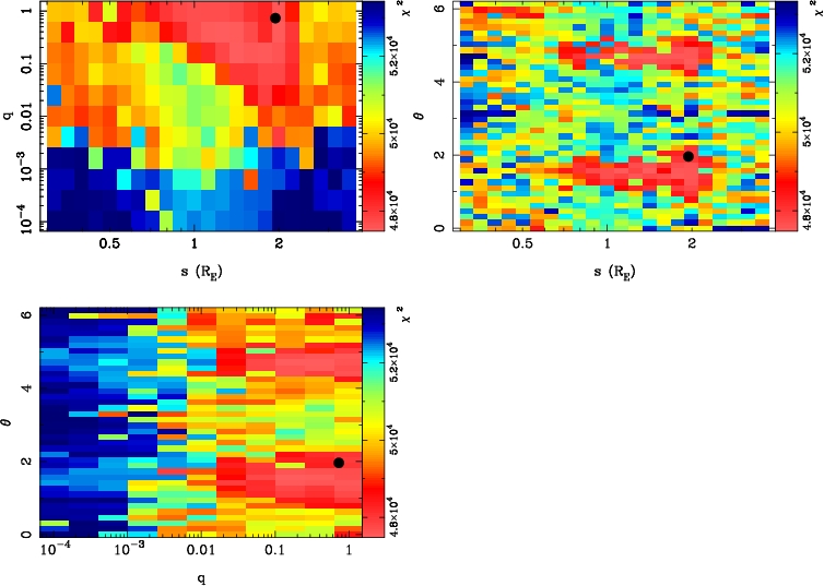 | tE(day) | q | s | α(radian) | ρ | χ² |