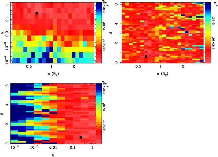 | tE(day) | q | s | α(radian) | ρ | χ² |