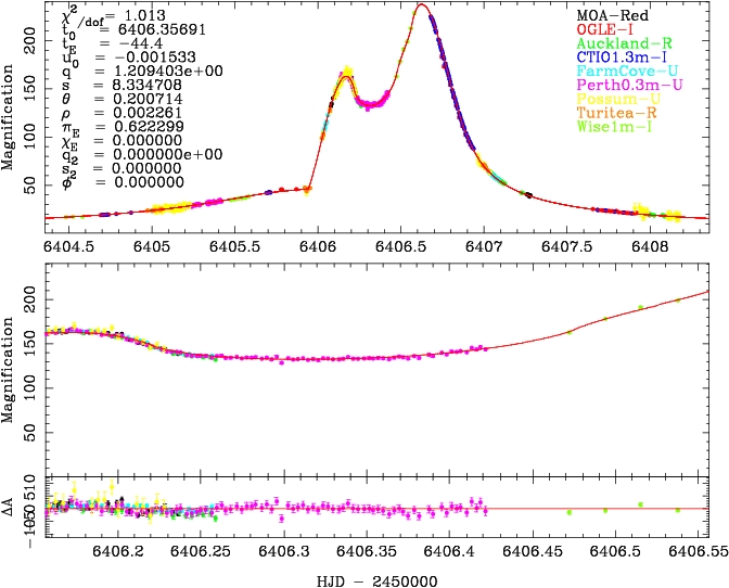 | tE(day) | q | s | α(radian) | ρ | χ² |
